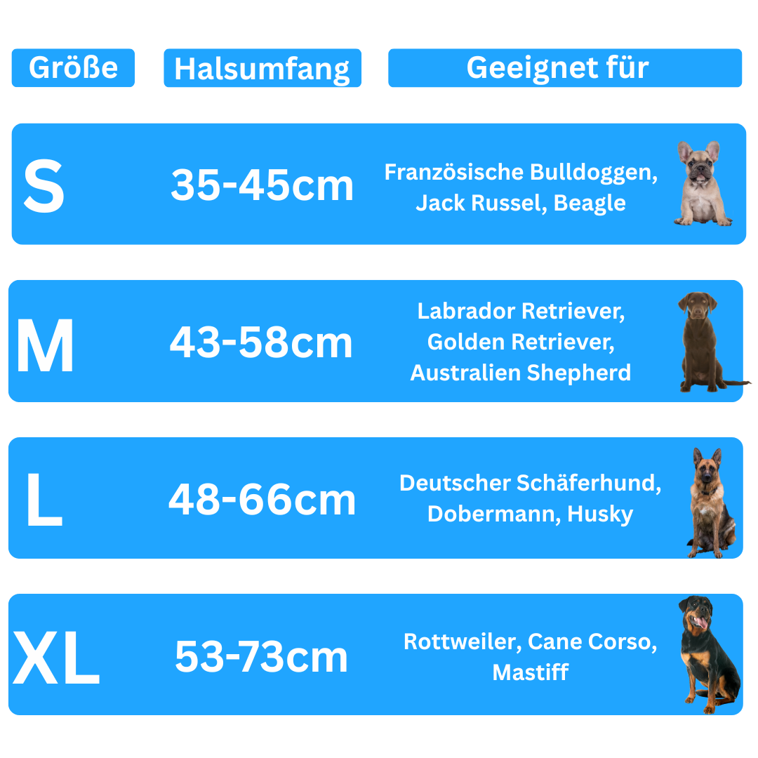 Das Zugstopp Halsband ist die ideale Lösung für Hundebesitzer, die sich mehr Kontrolle beim Spazierengehen wünschen – ohne ihrem Hund Schmerzen zuzufügen. Es begrenzt den Zug automatisch, sobald dein Hund nach vorne zieht, und liegt ansonsten locker und angenehm am Hals an.